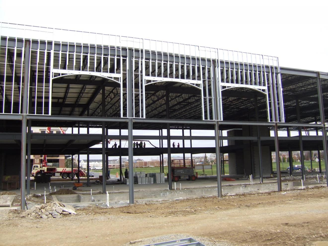 Conventional steel framing with composite metal deck and concrete floors. The roof consists of metal deck with steel bar joists.
