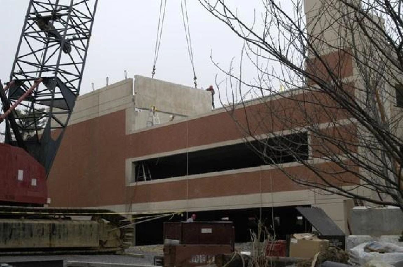 Parking garage construction is pre-cast concrete.